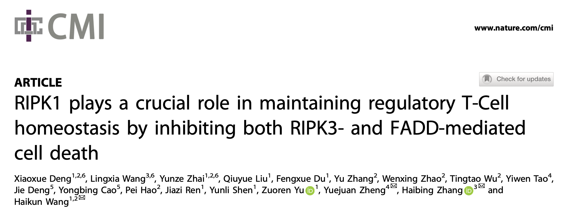 郑月娟、王海坤和章海兵团队发现调节性T细胞稳态维持的关键分子机制