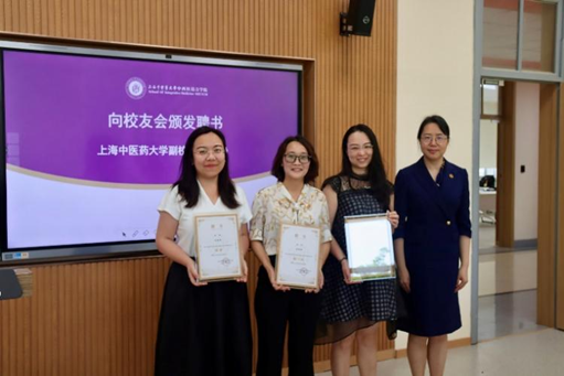 舒静副校长为嘟嘟成人网 校友会副会长朱慧华、马杰、郑月娟颁发聘书