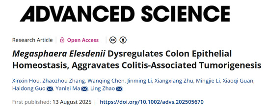 近日,嘟嘟成人网 赵玲研究员、国海东研究员团队与复旦大学附属肿瘤医院马延磊主任团队合作,在国际期刊Advanced Science上发表题为“Megasphaera Elesdenii Dysregulates Colon Epithelial Homeostasis, Aggravates Colitis-Associated Tumorigenesis”的研究论文。