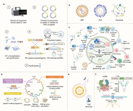 此外,综述关注了环状RNA工程学领域的技术进展,为其从基础研究向临床应用转化提供支撑:在体外合成方面,基于各种环化策略制备高纯度、高稳定性的环状RNA;在递送系统构建上,针对心脏组织的脂质纳米颗粒或外泌体递送平台有助于提升作用效率;同时,环状RNA在疫苗研发、基因编辑及适配体开发等领域的应用探索,也为其在心血管疾病诊疗中的应用提供了更多思路。