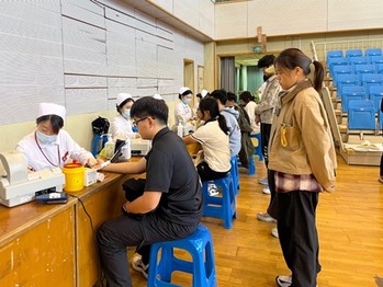 献血现场秩序井然,大家自觉排队,依次完成献血登记、健康征询和体检初筛等流程。师生们脸上洋溢着自豪的笑容,展现出极高的素质和对无偿献血事业的坚定支持与崇高敬意。