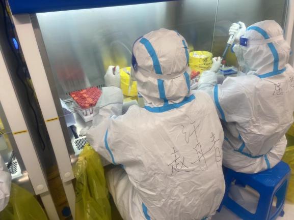 我院与交大医学院联合培养的2021级中西医结合基础专业博士生赵汗青由于住在浦西宛平南路宿舍,所以跟随交大的PCR志愿者队伍驻扎于上海兰卫医学检验所。