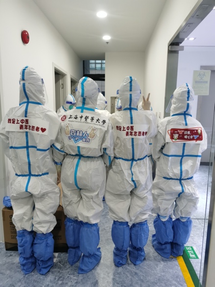 三月中,随着上海疫情防控形势升级,核酸检测任务日渐加剧,上海高校开始征集大学生PCR检测志愿者。我院博士生邢正操、邵诗芸、赵汗青,甚至博士毕业班同学李世春、李星,都积极响应号召报名,想为集体、为上海尽自己的一份力。在职博士生施丹更跟随岳阳中西医结合医院医疗队在抗疫前线--医疗隔离点冲锋。