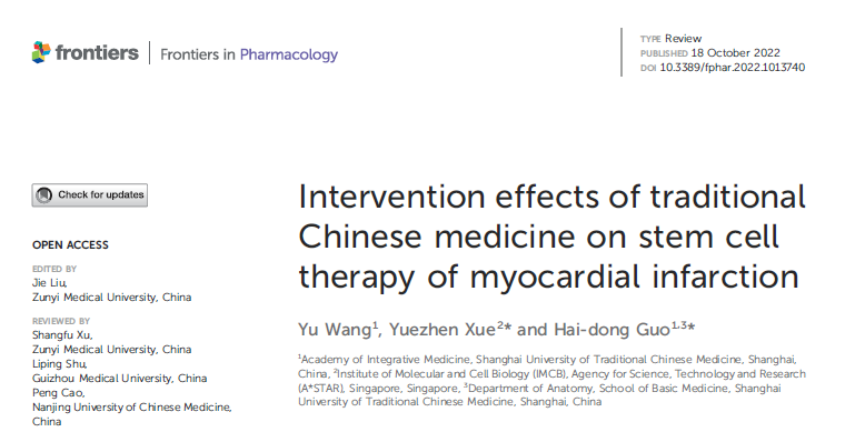 中西医结合研究院国海东团队在Frontiers in Pharmacology 上发表中医药与干细胞治疗的综述文章