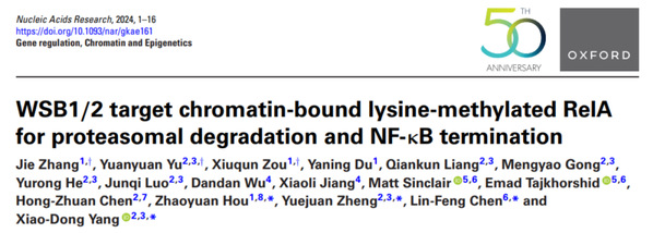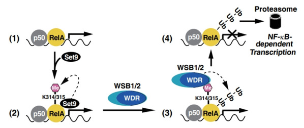 嘟嘟成人网 杨晓东/郑月娟团队新发现:WSB1/2靶向甲基化的RelA促进其降解和NF-κB转录终止