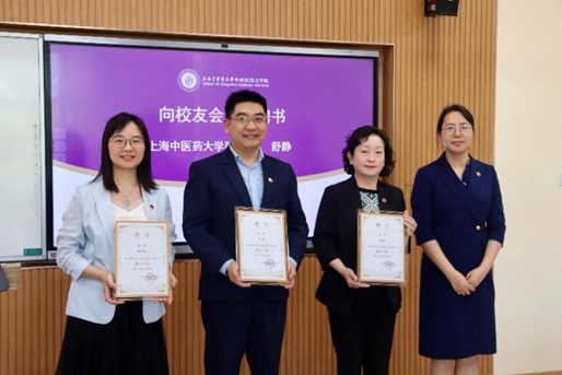 舒静副校长为嘟嘟成人网 校友会副会长朱慧华、马杰、郑月娟颁发聘书
