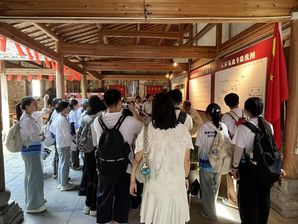 当日下午,实践队伍奔赴深藏于青山翠谷中的精神高地——石屋坑。蜿蜒山路指向峥嵘岁月,这里曾是皖浙赣革命根据地的坚实堡垒。在村长动情讲述中,简陋的红军棚、斑驳的标语、崎岖的运粮道,将那段“不畏艰难、信念如磐”的烽火岁月重现在眼前。青年学子踏着先辈足迹,于无声处聆听历史惊雷,红色基因如汩汩清泉,悄然浸润心田,化为新时代青年砥砺家国情怀、勇担复兴使命的深沉滋养。